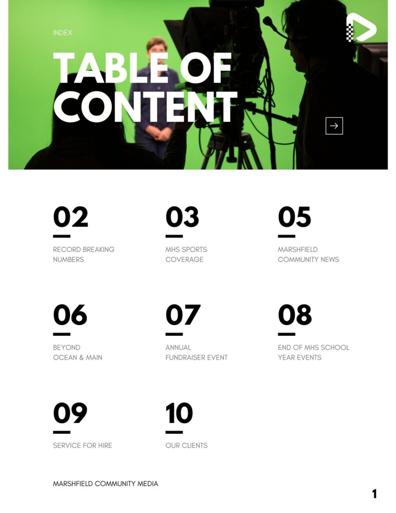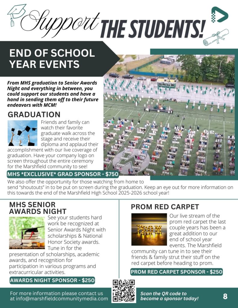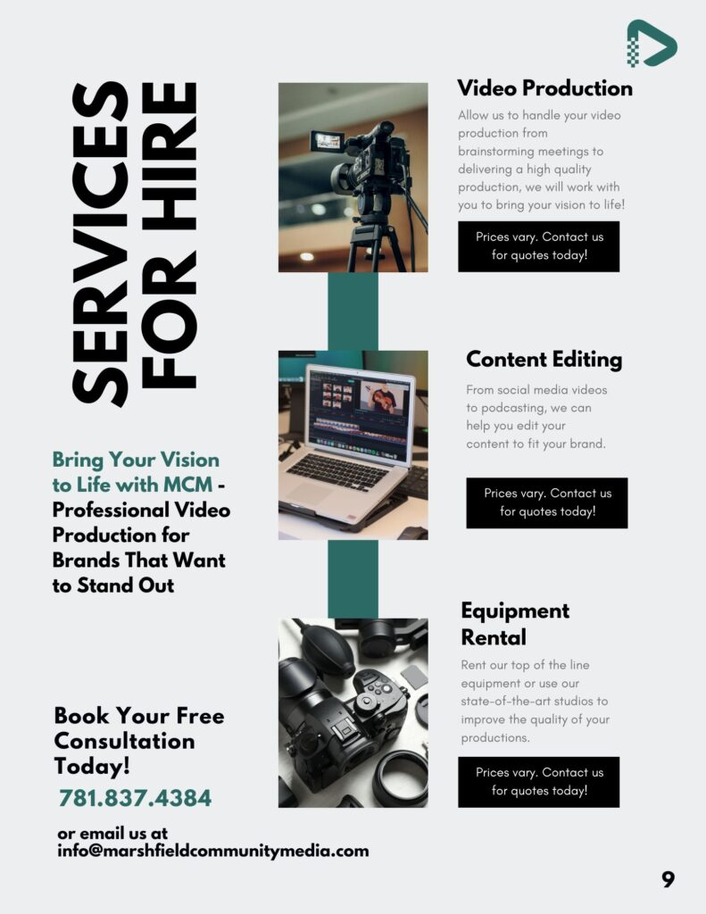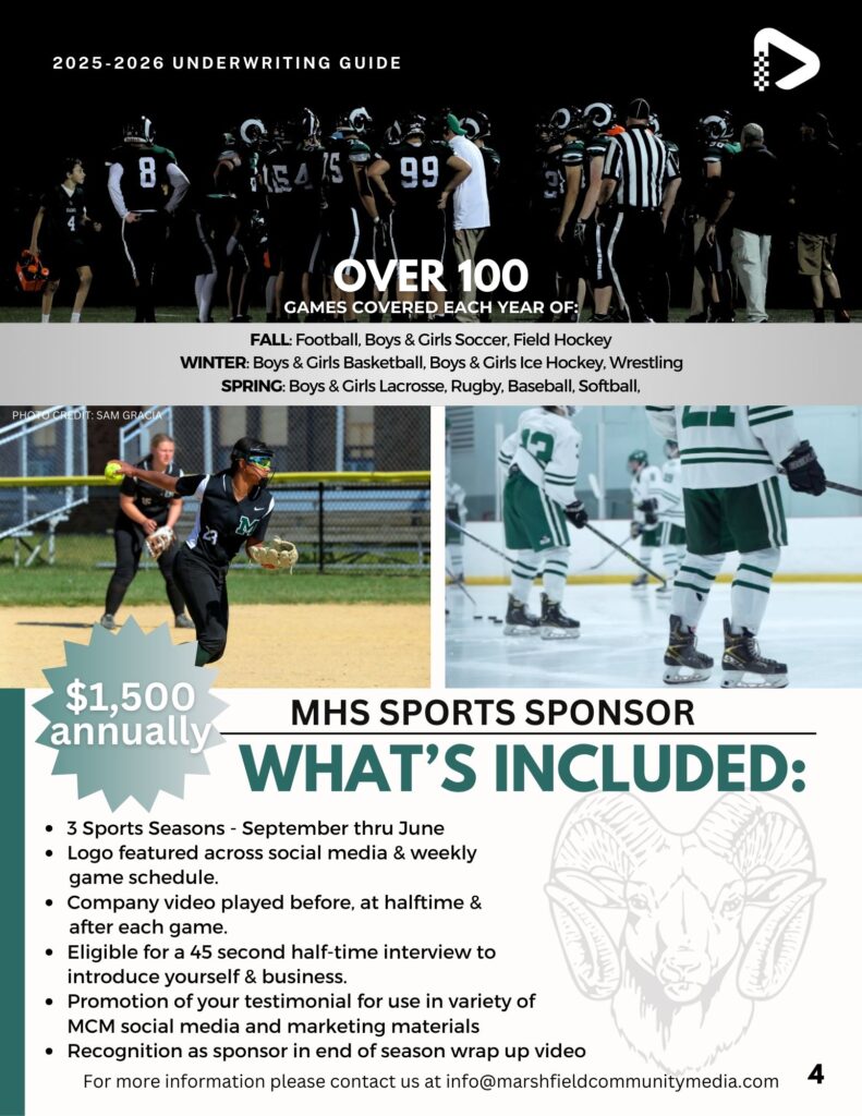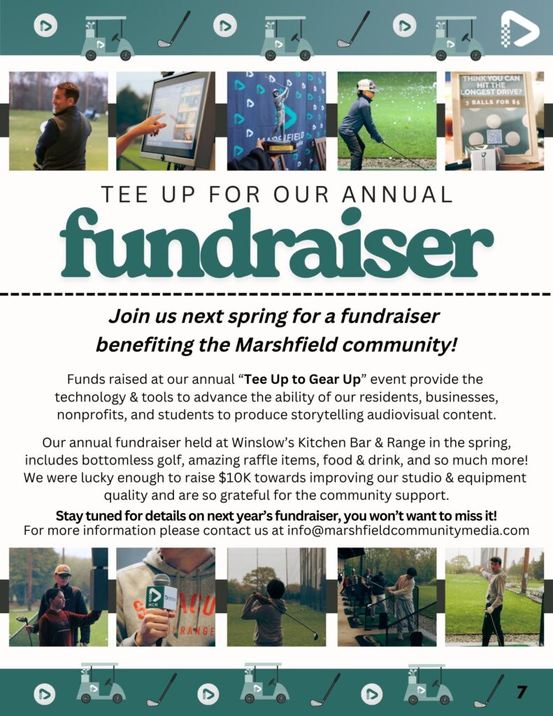 Underwriting possibilities range from assisting businesses to lend their support to community media while also reaching their target audience, supporting the important parts of town government, or for coverage of Board of Selectmen’s’ meetings. Contact us today to learn more about how you can support community media in the town of Marshfield!